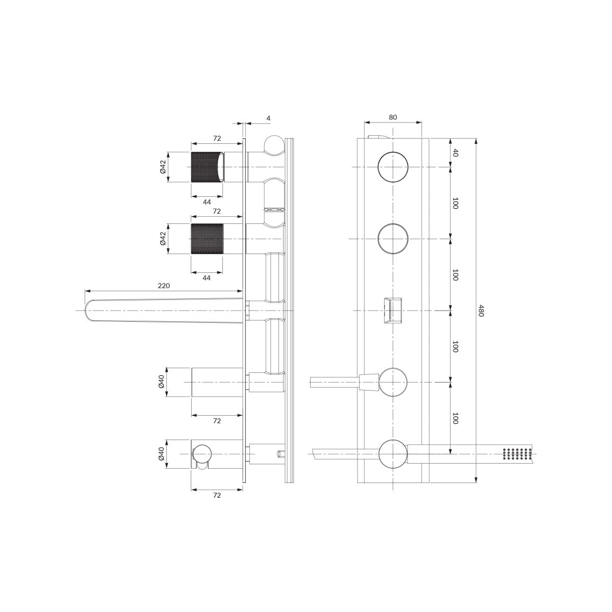 CONTOUR | Mezclador de 5 orificios para instalación empotrada en bañera