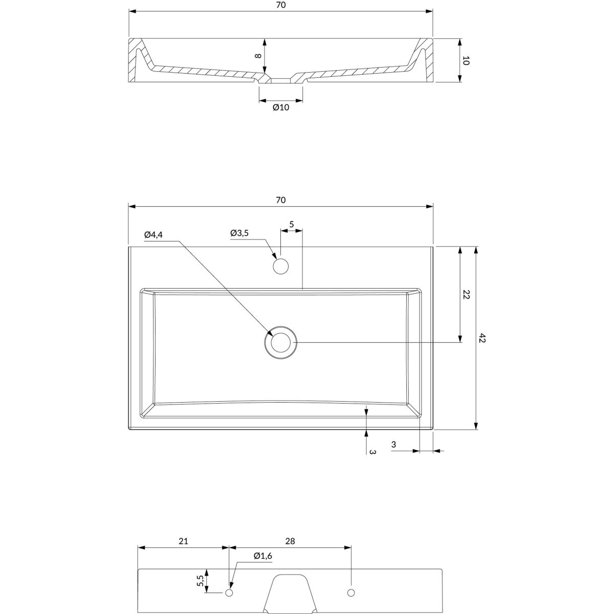 - sin tapón de lavabo