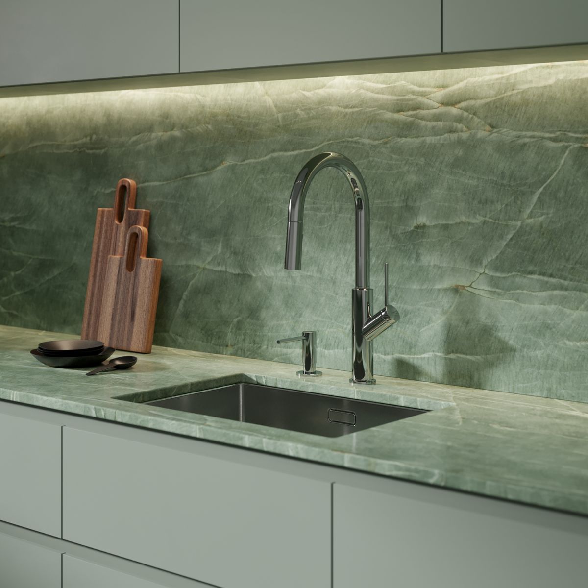 El dispensador de jabón líquido es una solución práctica y estética, ideal tanto para la cocina como para el baño. Facilita el mantenimiento del orden en la zona de trabajo y permite ganar más espacio en el día a día, mientras que la posibilidad de montarlo directamente en la encimera, el fregadero o el lavabo garantiza una total flexibilidad de diseño. Gracias a la combinación de colores con los acabados de los grifos OMNIRES, el dispensador combina armoniosamente con el resto de los elementos del equipamiento, y su diseño ergonómico garantiza un acceso cómodo y rápido al jabón o al lavavajillas