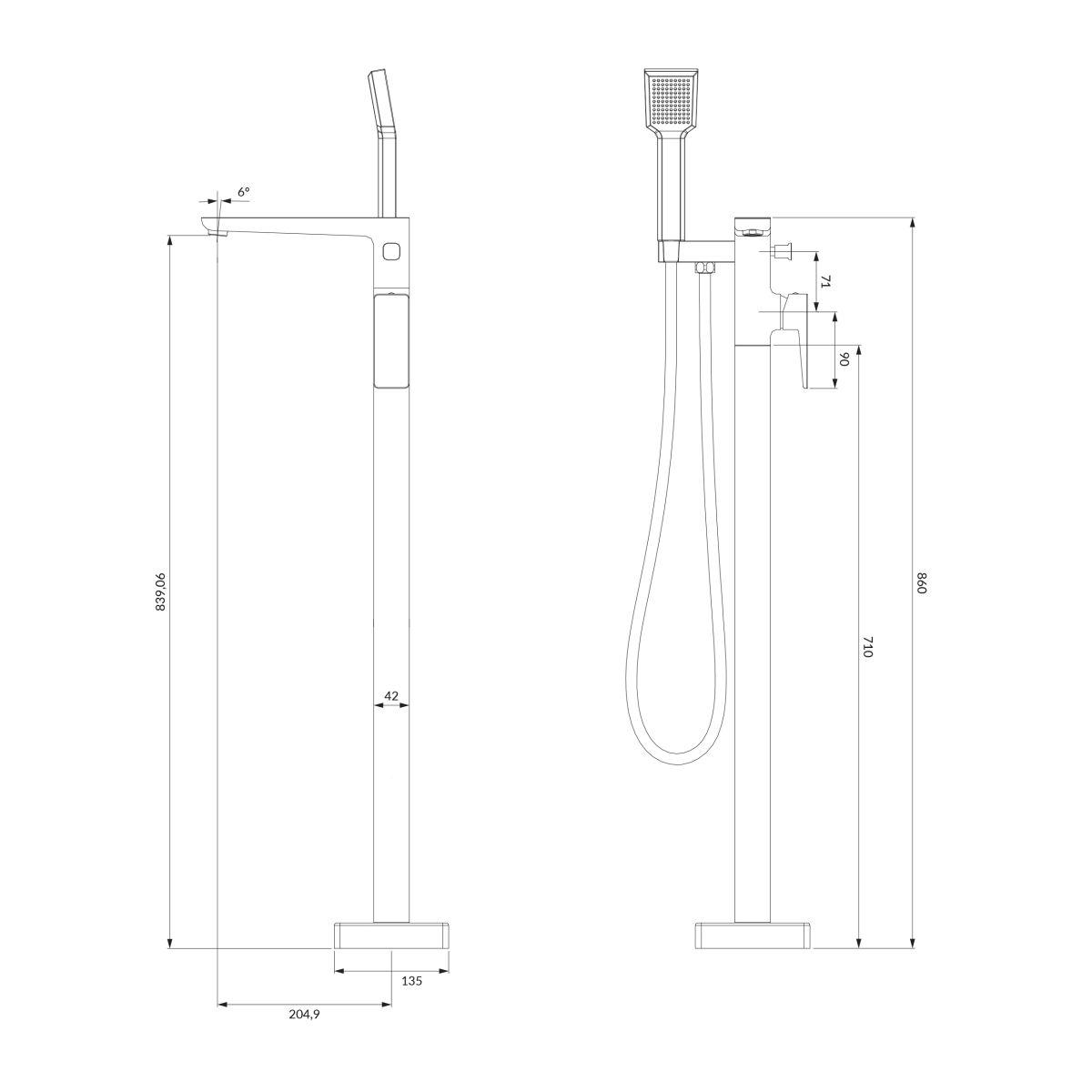 Omnires Parma grifo de bañera y ducha en suelo cromo-blanco PM7433CRB