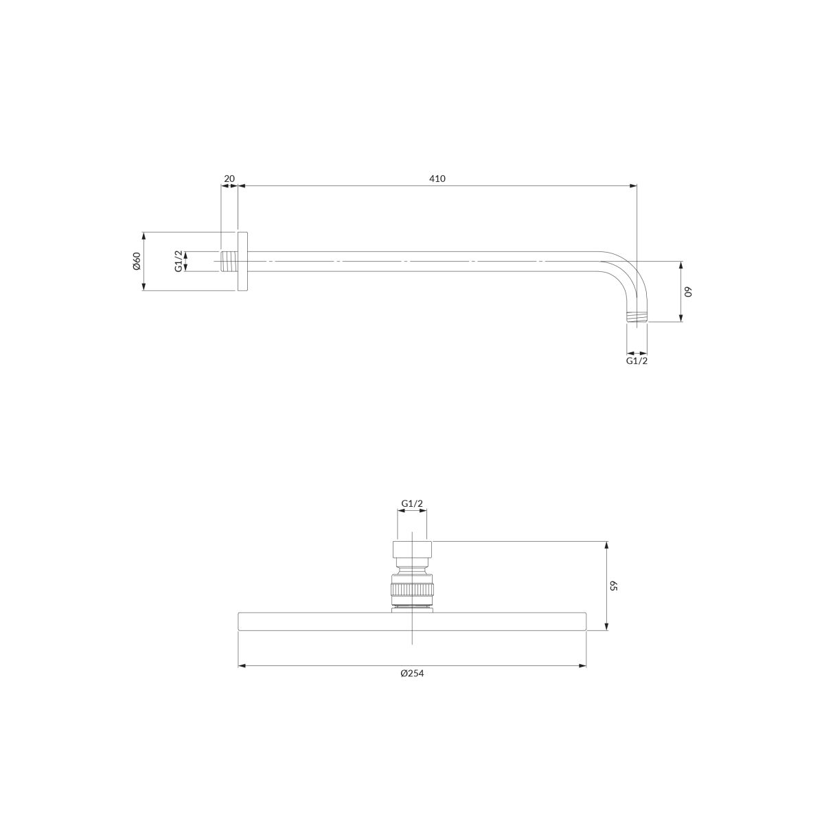 Omnires SlimLine brazo de ducha con efecto lluvia 25x25 cm circular cobre WGSET1CP