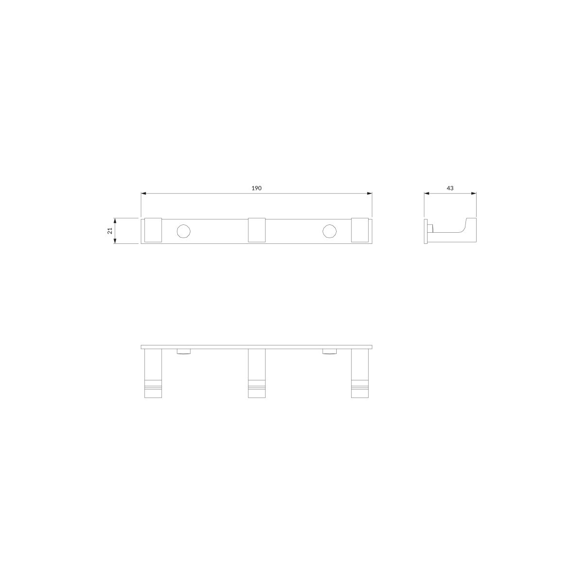 - anchura: 19 cm, altura: 2 cm, distancia de la pared 4 cm