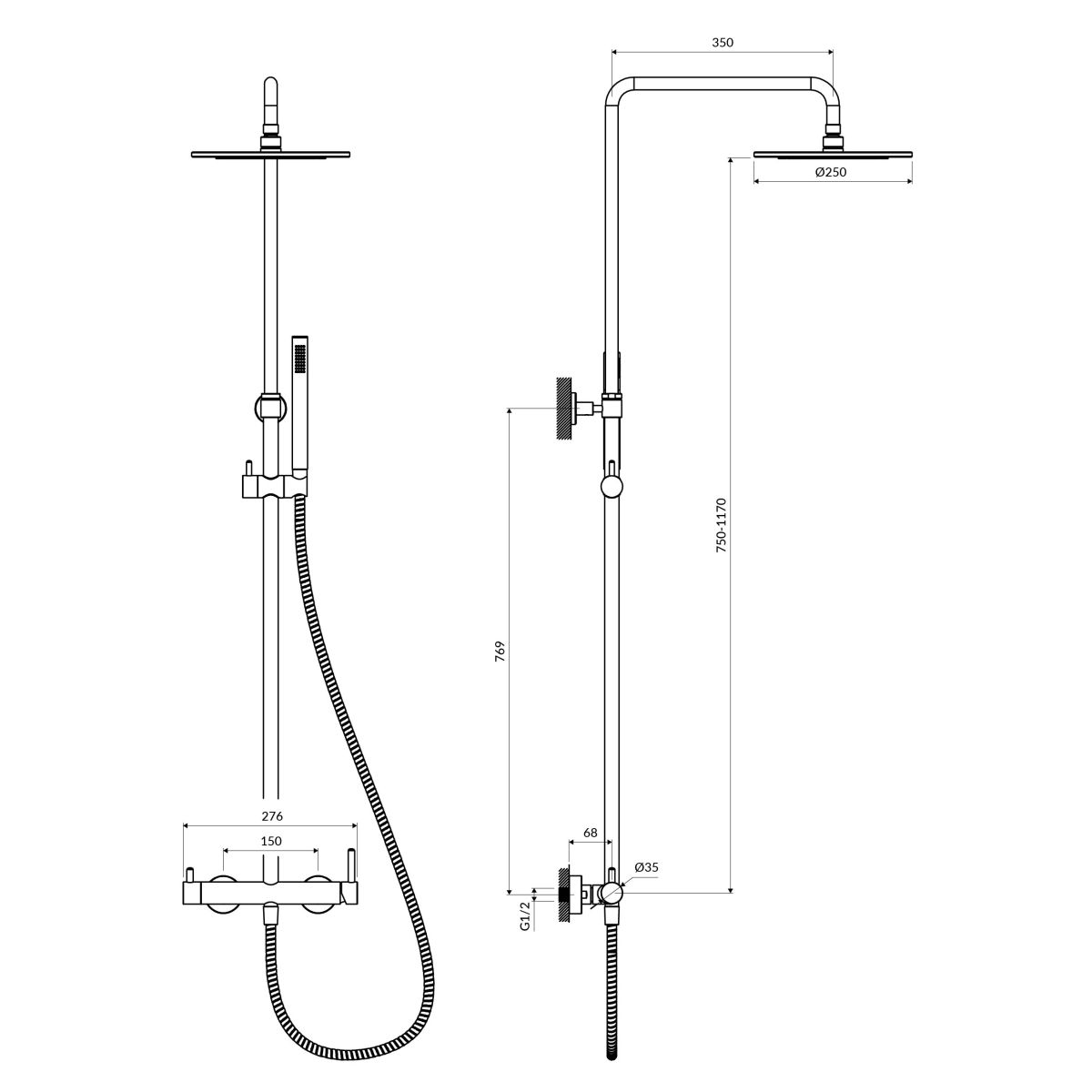 - Incluye: grifo con conmutador, ducha con efecto lluvia, alcachofa de ducha, manguera de ducha, barra de ducha