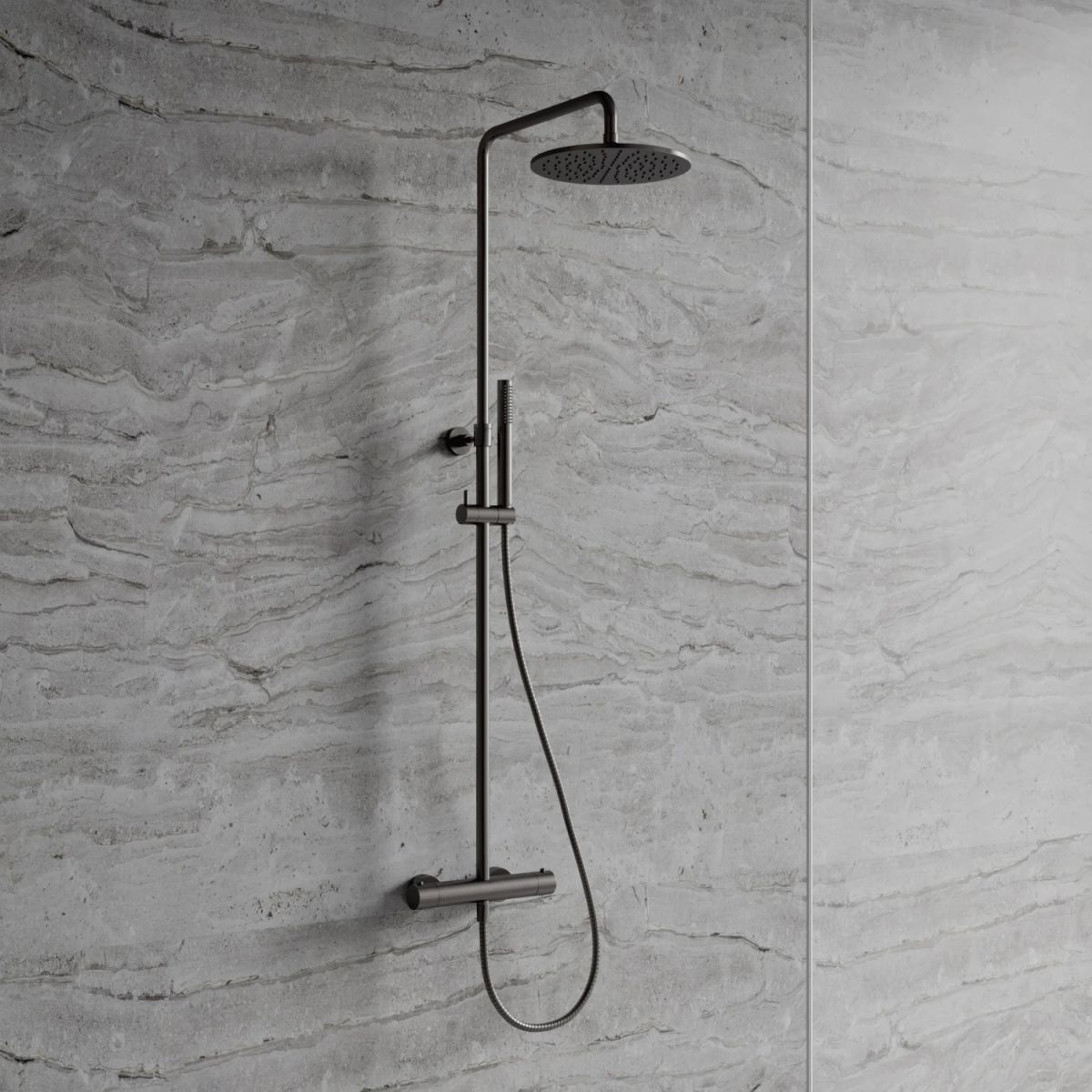 Omnires Y conjunto de ducha a pared con termostato con rociador con efecto lluvia grafito Y1244SUGR