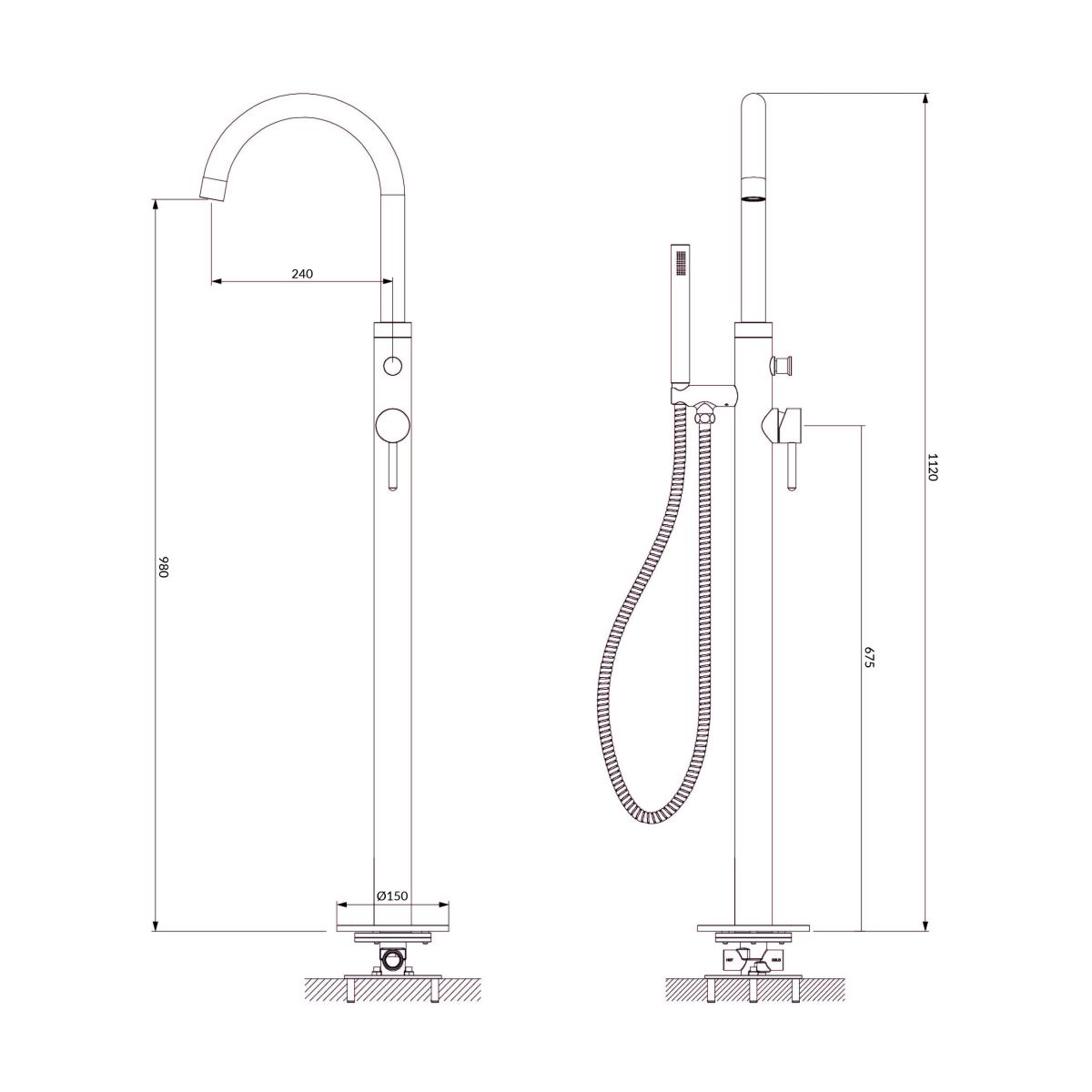 Omnires Y grifo de bañera y ducha en suelo cobre Y1233CPB