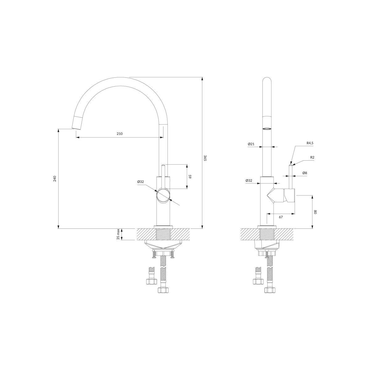 - alcance del caño: 21 cm