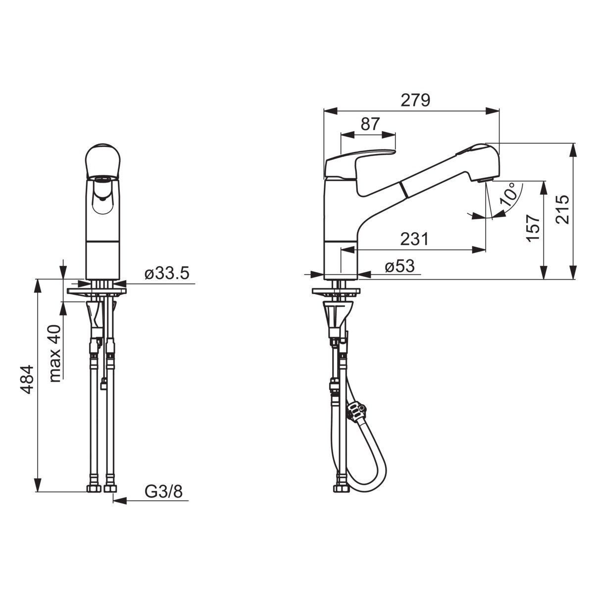 - el ángulo de rotación del caño viene ajustado de fábrica a 120° (puede limitarse a 40° u 80°)