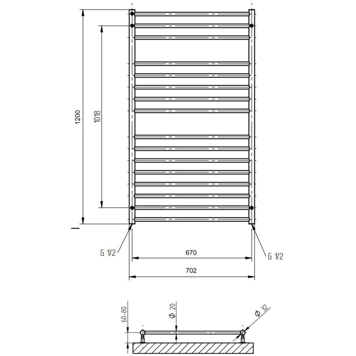 - diámetro de los colectores verticales ø 32 mm