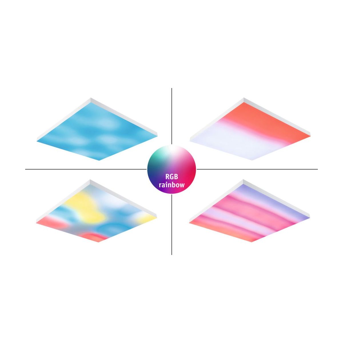 El panel LED combina la iluminación perfecta de la habitación con la magia del color puro. La temperatura del color puede ajustarse mediante mando a distancia desde 3000 K blanco cálido hasta 6500 K blanco luz diurna y favorece el biorritmo natural. El plafón también impresiona con 16 animaciones preprogramadas y un control dinámico del color, que sólo son posibles con luz plana. Cada escena luminosa puede ajustarse en términos de velocidad o congelarse como imagen fija. Así se crea una superficie luminosa única e individual. El panel LED Velora Rainbow puede regularse sin escalonamientos y dispone de una función de luz nocturna integrada. El plafón se caracteriza por una superficie luminosa mate de alta calidad y un diseño elegante sin marco. El montaje en la pared o en el techo se realiza mediante un marco flotante.