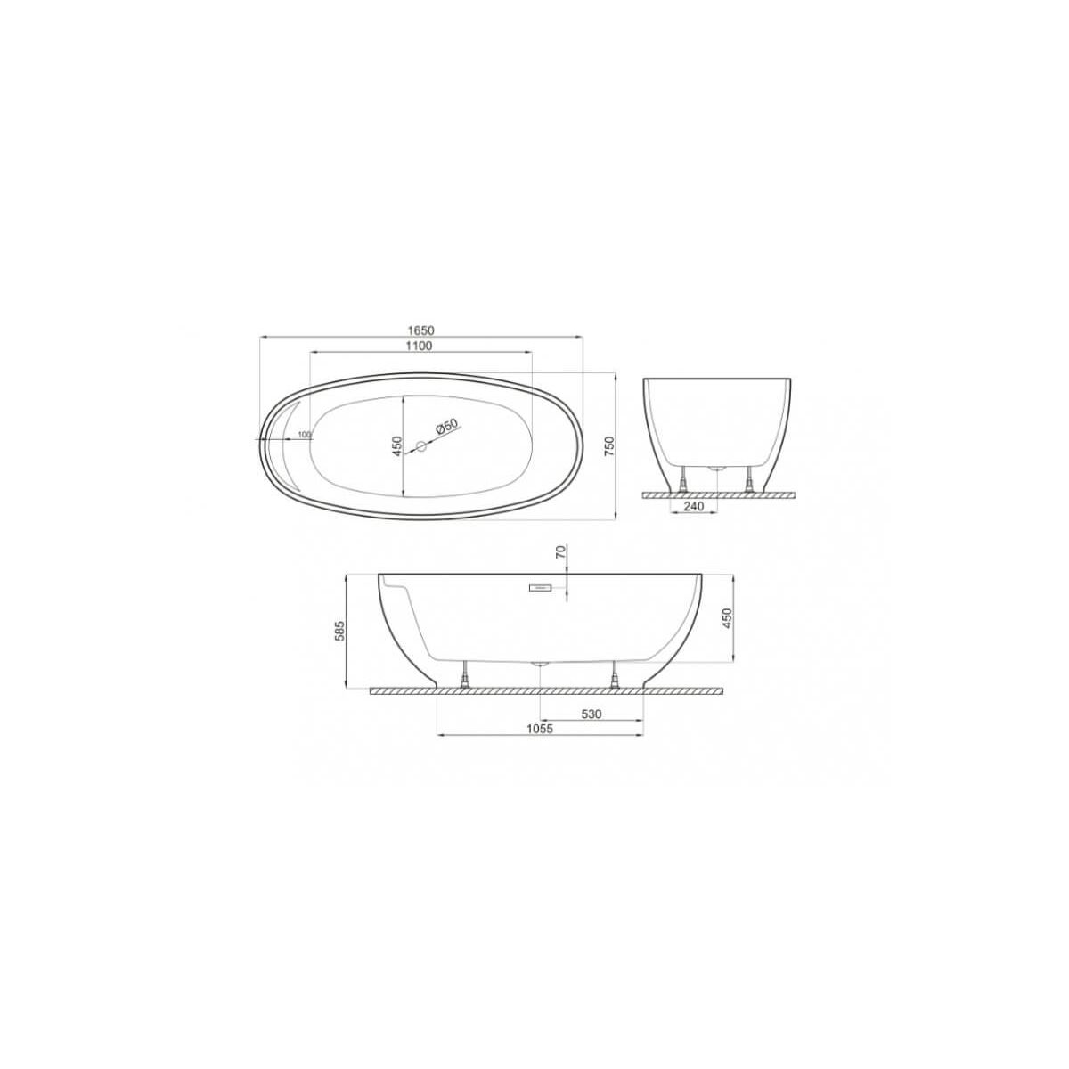 Polimat Kivi bañera exenta 165x75 cm oval bicolor 00472