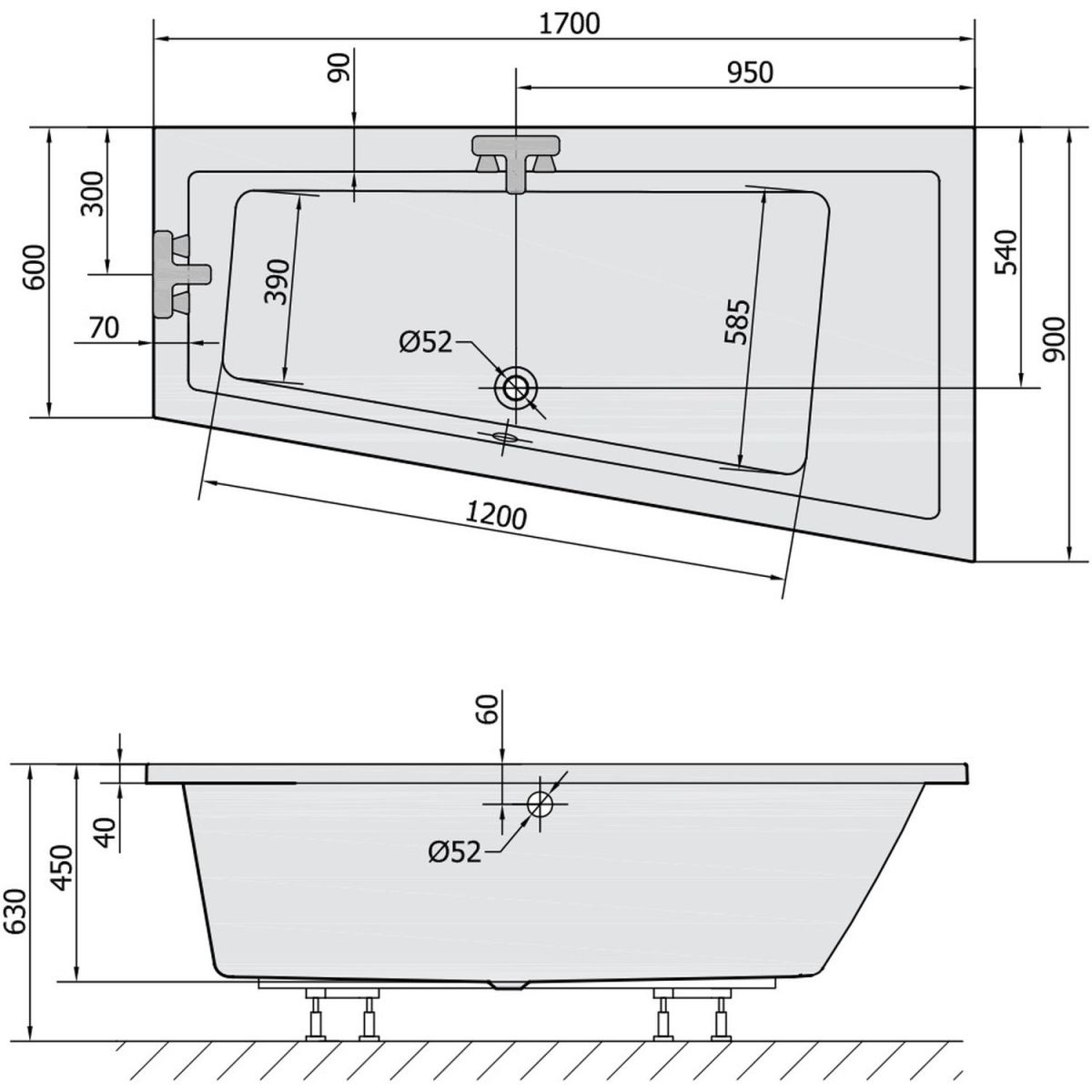 Polysan Andra bañera de esquina 170x90 cm derecha blanco 81511