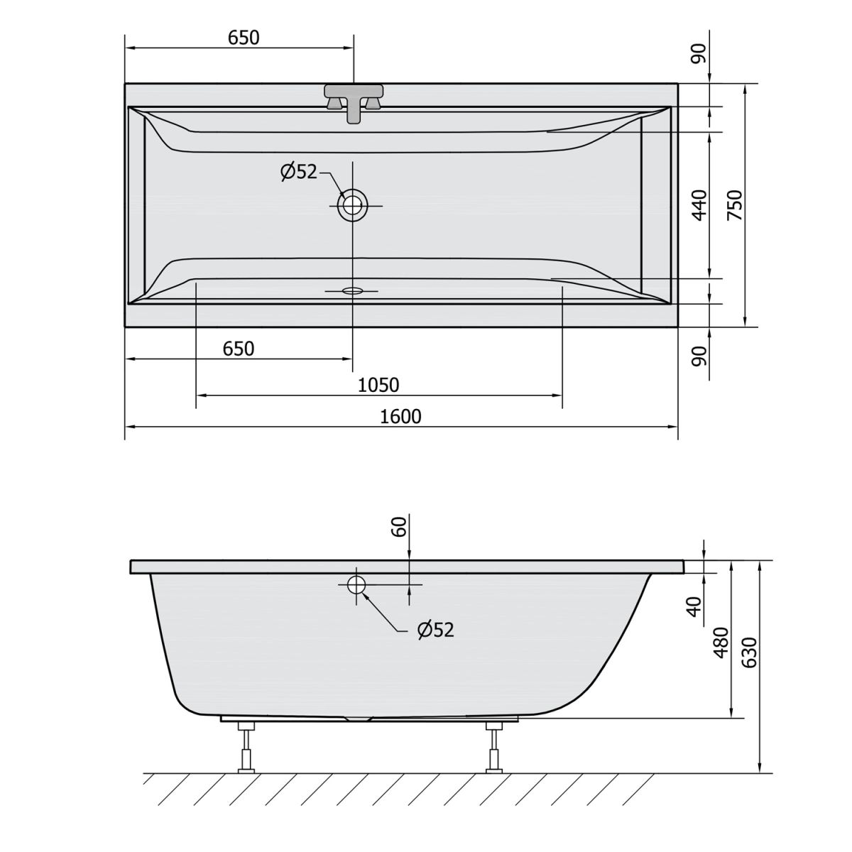 Las patas (marco FR16075) y el kit de desagüe deben adquirirse por separado.