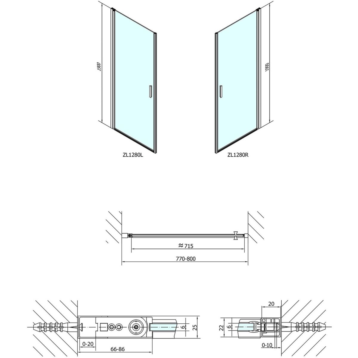 Polysan Zoom Line puerta de ducha 80 cm oscilante cromo brillante/vidrio transparente ZL1280