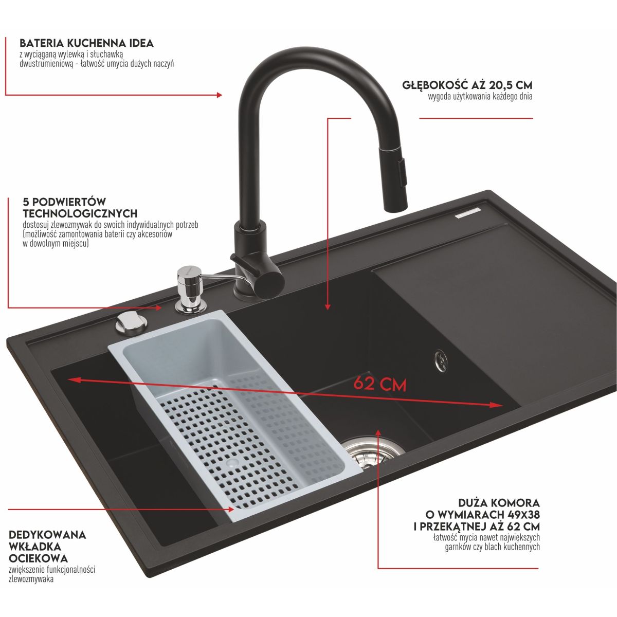 Conjunto de fregadero Pyramis CAMEA granito (79x50) 1B 1D Volcán color derecho + grifo monomando Idea 070168501I