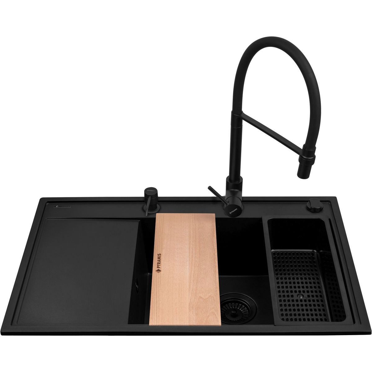 Conjunto de fregadero Pyramis CAMEA (79x50) 1B 1D de granito, color derecho volcán BLACK EDITION + grifería SERINA 070168502S