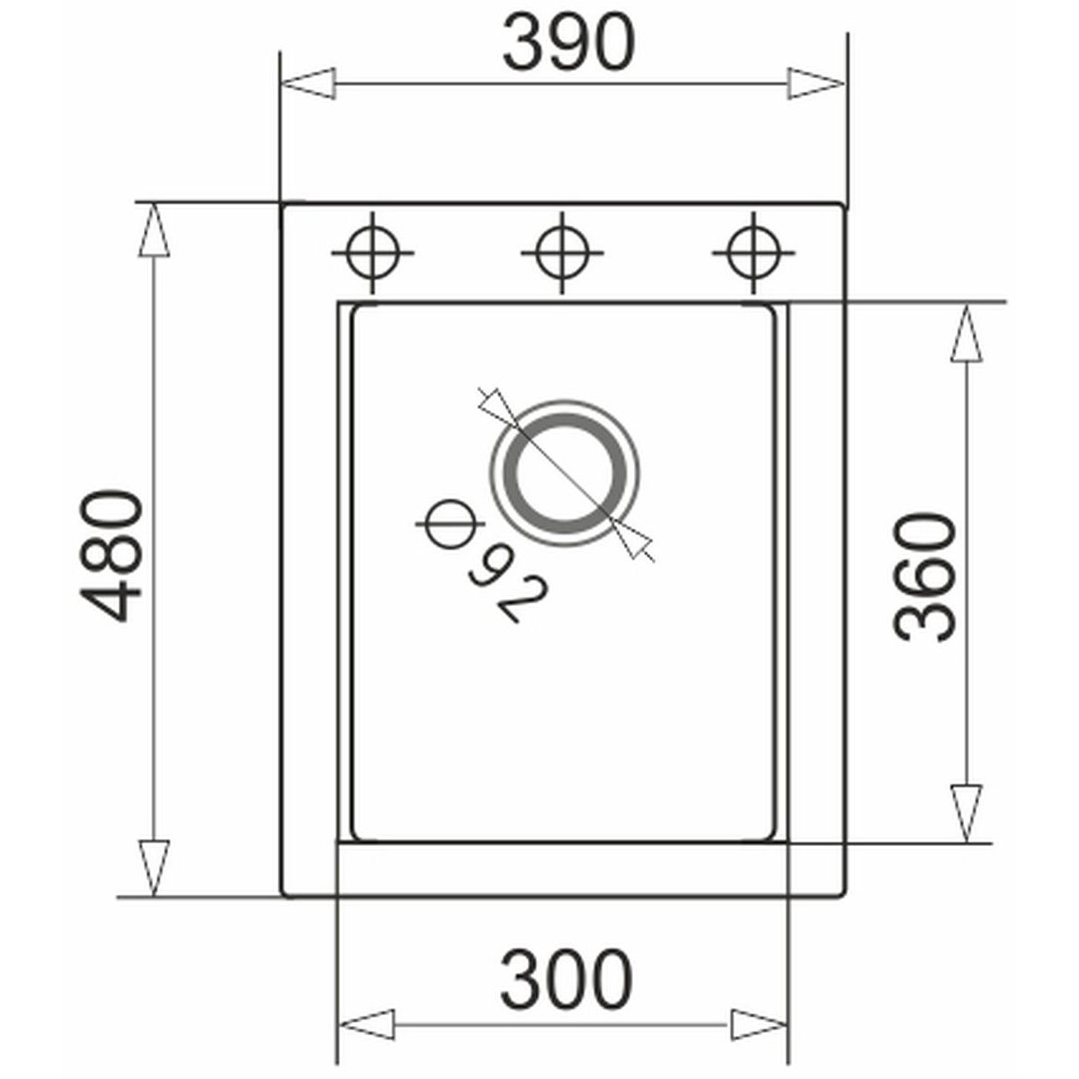 - 3 orificios avellanados para colocar libremente mezcladores y otros accesorios, por ejemplo, dosificadores de fluidos, tapones automáticos, etc