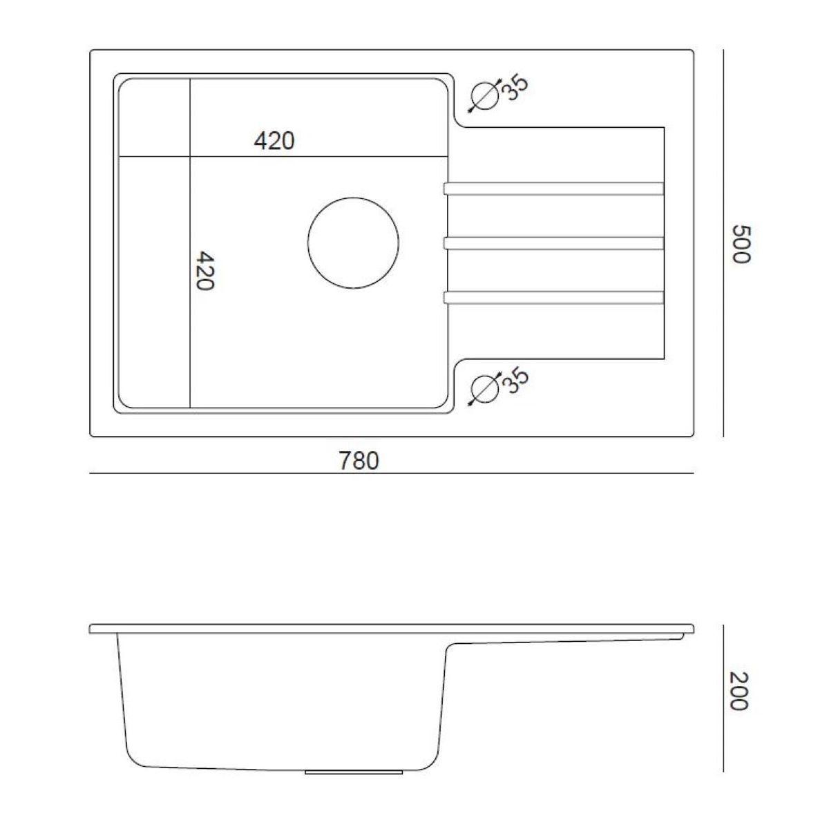 - fregadero de 78 x 50 x 20 cm con sifón manual que ahorra espacio en el armario (base mínima de 60 cm)