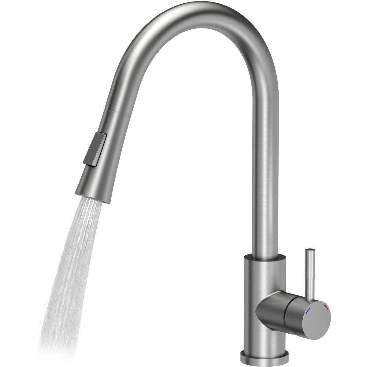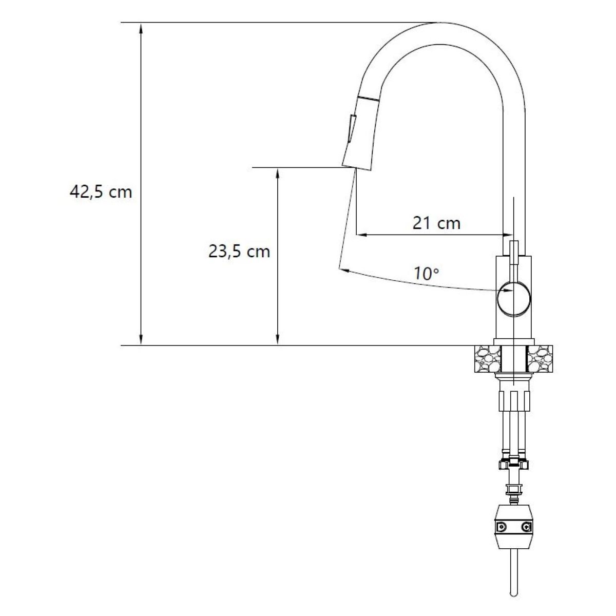 - mezclador de acero de 42,5 cm de altura con rociador extraíble e interruptor para la función de ducha (mezclador con sistema de montaje QFix, es decir, una tuerca sin herramientas adicionales)