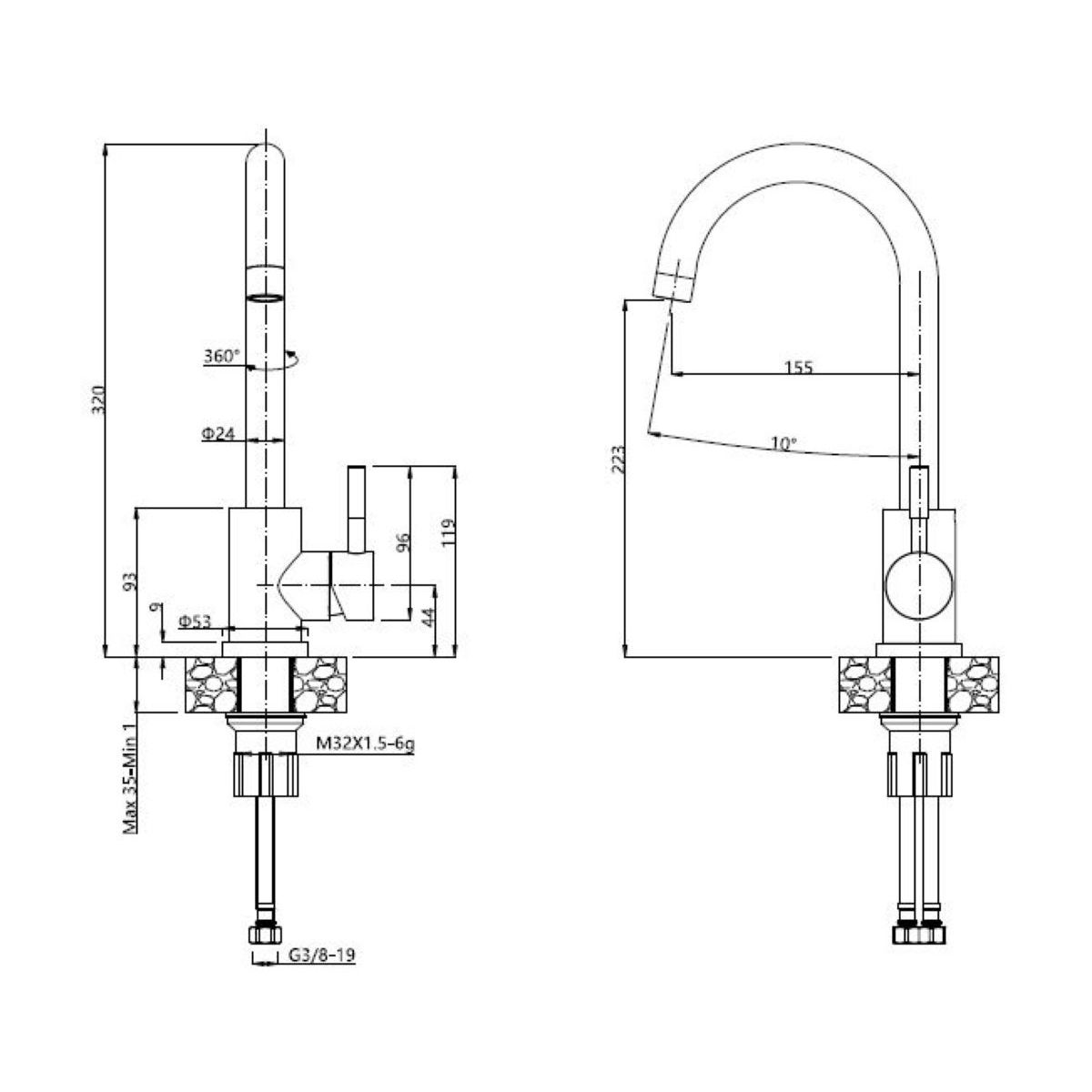 El fregadero puede instalarse en armarios de 50 cm de ancho. Viene con un sifón manual con posibilidad de conectar una lavadora/lavavajillas.