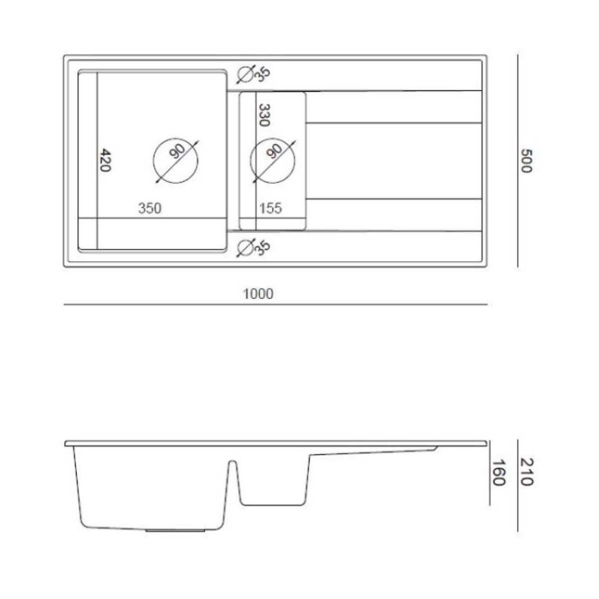 - profundidad de la cubeta pequeña: 16 cm