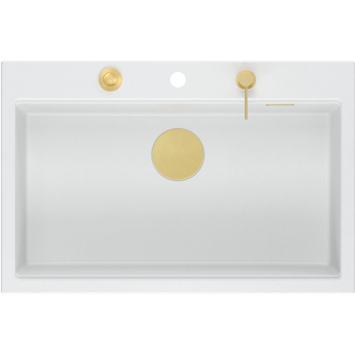 Marc 110 FM para montaje a ras de encimera es un fregadero de una sola cámara que, gracias a su capacidad, permite un amplio uso en la cocina. El producto, montado de esta manera, tiene un aspecto muy moderno, lo que le da estilo a la estancia y, al mismo tiempo, evita que los restos de comida o la suciedad se acumulen en los bordes. Con un solo movimiento, se pueden recoger las migas u otros restos del trabajo realizado en la cámara del fregadero, lo que facilita considerablemente el mantenimiento del orden. Este modelo está equipado de serie con un sifón automático Push-2-Open, por lo que no es necesario mojarse las manos para vaciar la cavidad. La variante con grifería de acero se complementa con tres accesorios funcionales del mismo color. Por su parte, los fregaderos con grifería con revestimiento PVD incluyen un elemento adicional de equipamiento de cocina: una tabla de cocina. Gracias a sus ventajas: gran cavidad, accesorios funcionales y método de montaje, el fregadero Marc 110 FM no solo es una solución práctica, sino también un elemento atractivo para la cocina. Producto en color blanco nieve con elementos dorados.