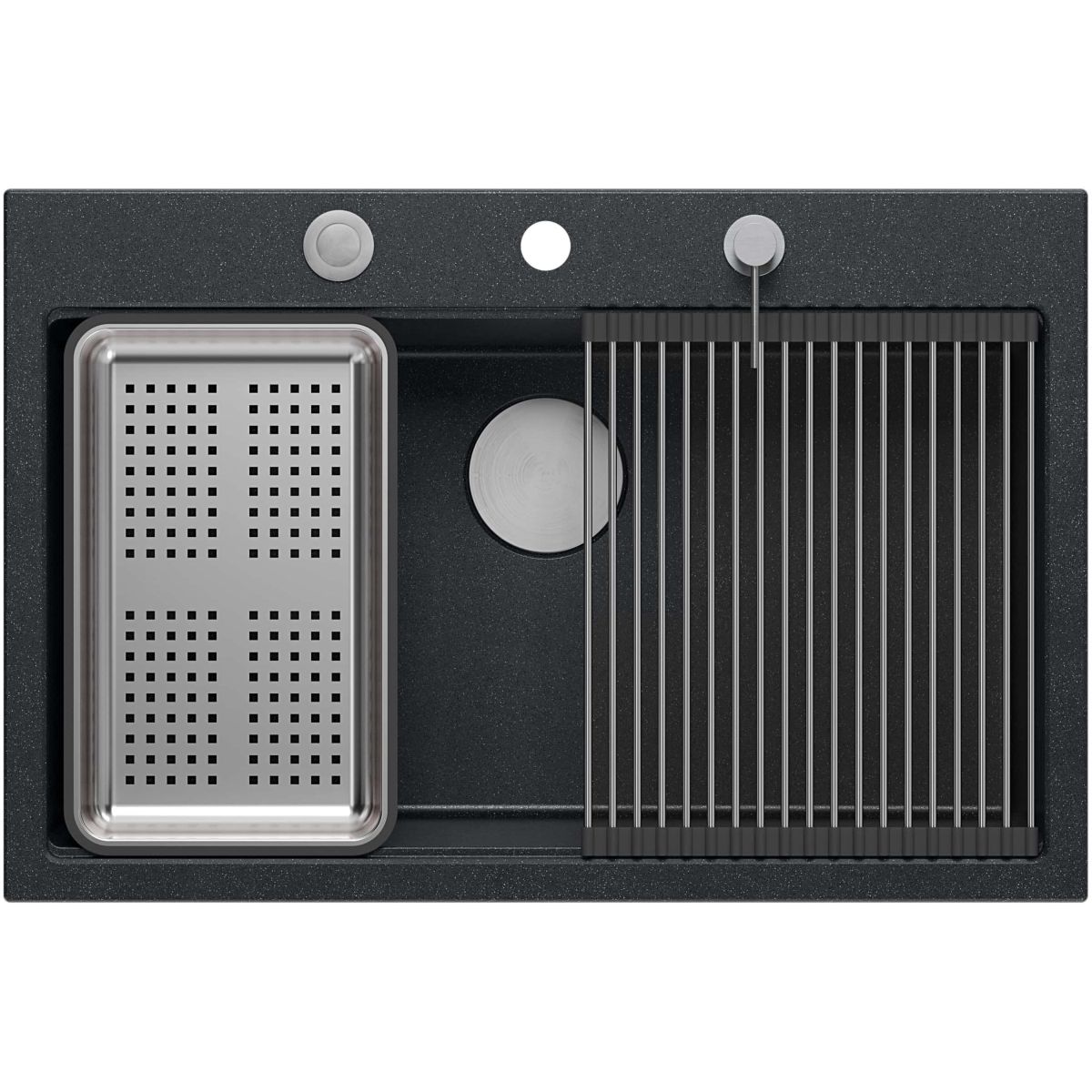 Marc Workstation GraniteQ - es una colección para usuarios que esperan una amplia funcionalidad de su fregadero. En el caso de este modelo, gracias a la cubeta extragrande de 61 litros, se pueden enjuagar y lavar cómodamente incluso bandejas de horno de gran tamaño.