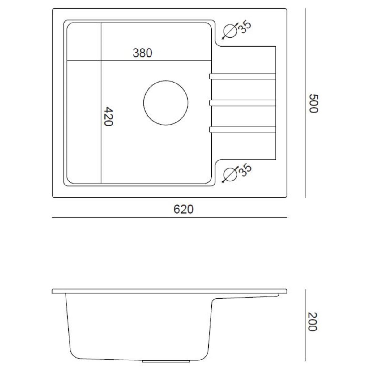 1. Fregadero de 1 cubeta con escurridor corto Peter 116 con una cubeta profunda de gran capacidad (20 cm) para mayor comodidad y conveniencia en el uso diario con un sifón manual para ahorrar espacio en el mueble y una tapa de acero.