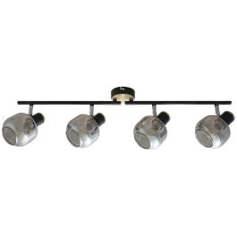 El foco cuádruple Salazar, fabricado en una combinación de metal y cristal, es un complemento distintivo para la decoración de estilo industrial de su hogar. Lo recomendamos especialmente para el salón, pero también puede colocarlo en el pasillo. Su marco negro recuerda a la madera de roble y se ha complementado con una base decorativa redonda y un tono ahumado. Las cuatro pantallas están en una sola línea, pero gracias a los cabezales regulables puedes dirigir la luz que emiten.