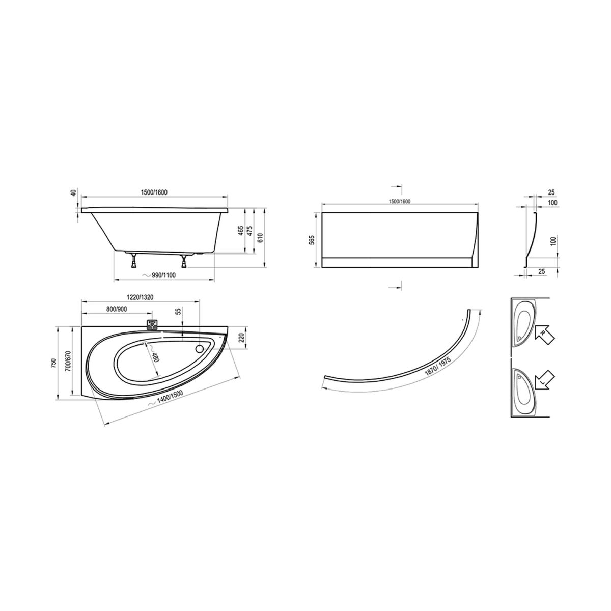 - carcasa para bañera de 150 cm