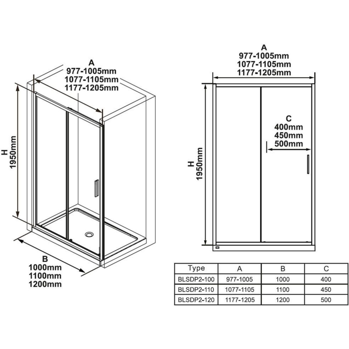 - ancho: 100 cm (rango de ajuste en el hueco: 97,7-100,5 cm, rango de ajuste cuando se utiliza con pared lateral: 99-101,8 cm)