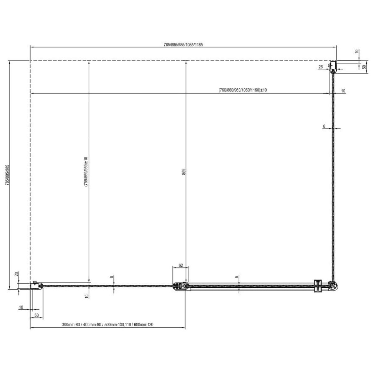 - Para montar solo con la segunda parte de la puerta CRV1 (80, 90, 100), CRV2 (80, 90, 100, 110, 120) o la pared fija CPS (80, 90, 100)