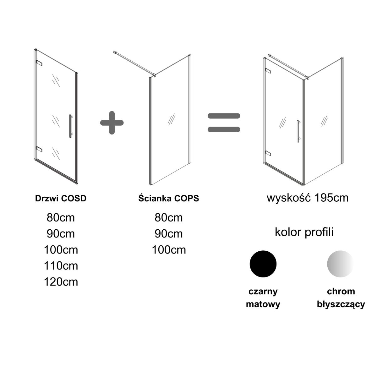 - la puerta se puede combinar con la pared fija COPS (80, 90, 100) para crear una cabina de ducha, ¡la pared se vende por separado!