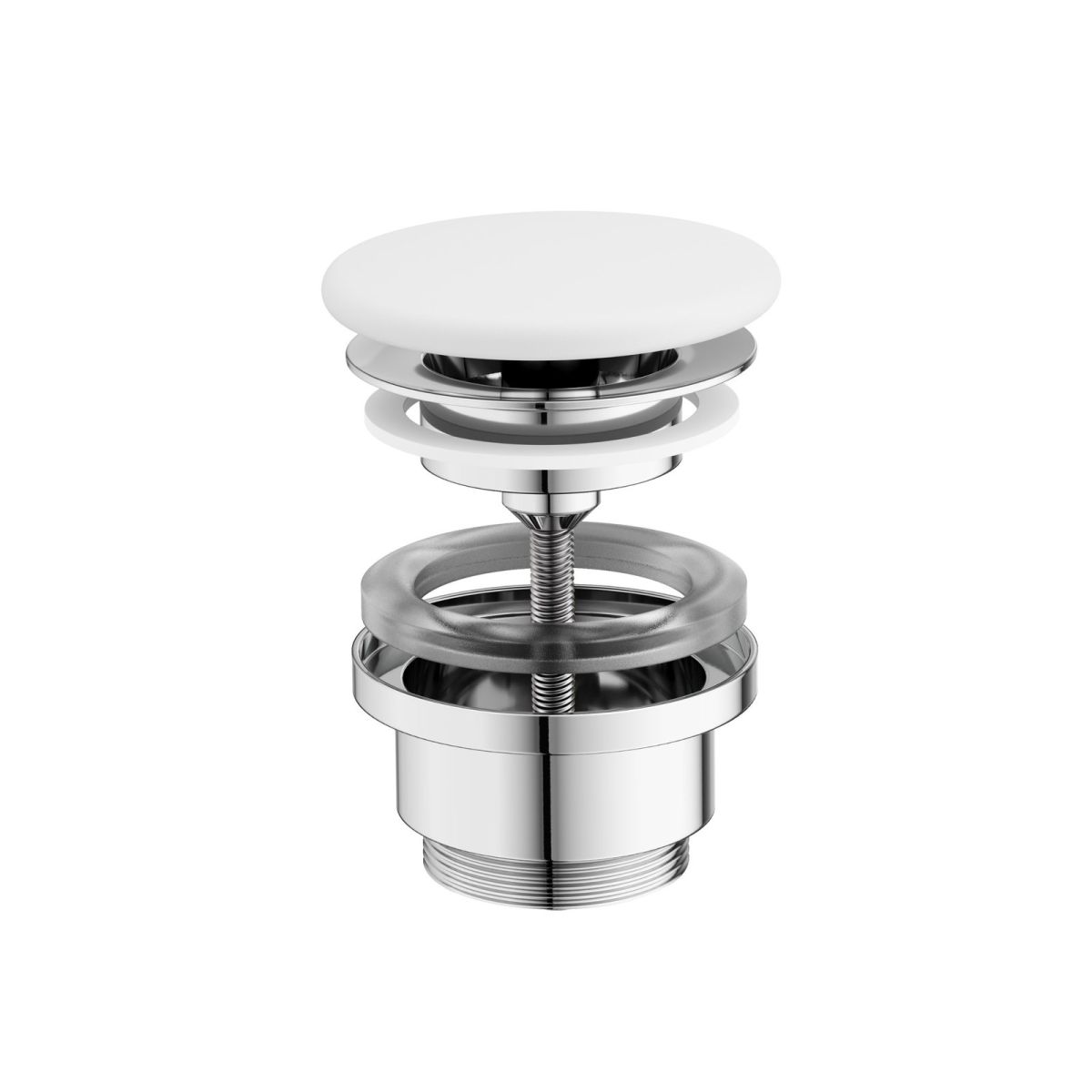 Tapón de lavabo Flat con cabeza de seta de cerámica en blanco mate. Diseñado para lavabos sin rebosadero.