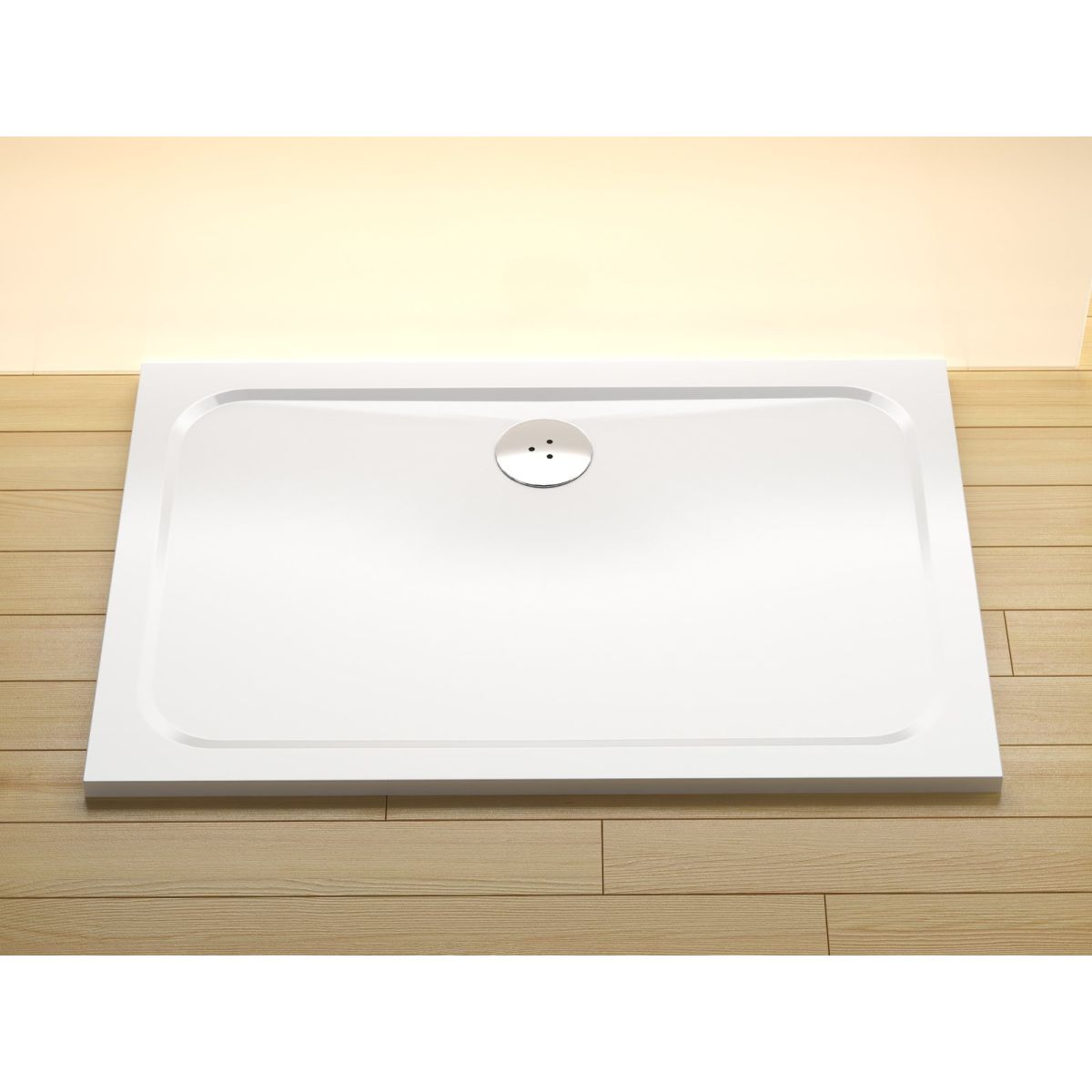 Plato de ducha rectangular Giant Pro Chrome de mármol fundido blanco, un complemento estético excepcional para su cabina de ducha. Plato de ducha bajo con fondo liso para facilitar la limpieza. Material de alta calidad para una larga vida útil y satisfacción en la ducha.