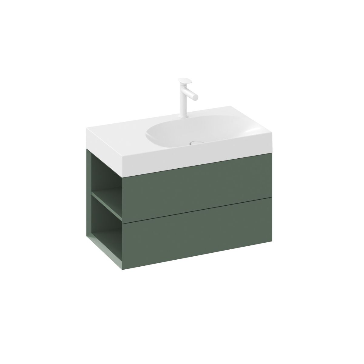 Mueble de lavabo SD Lite en diseño verde grisáceo. Versión izquierda.