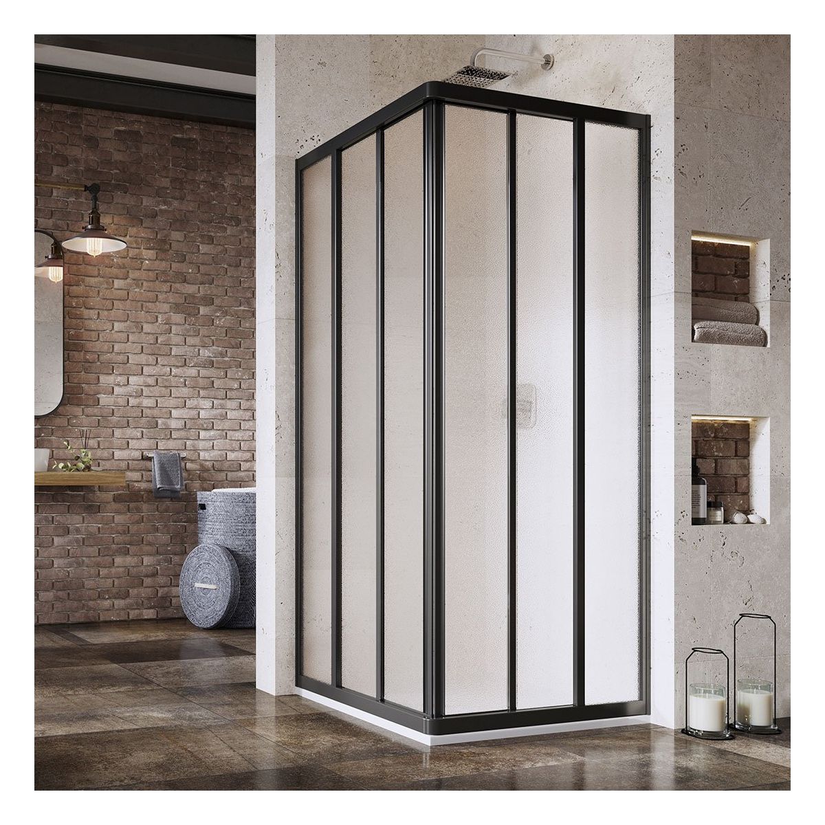 (una pared es suficiente para crear una zona de ducha completa)