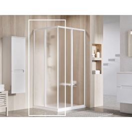 1/2 cabina de ducha angular Supernova en color blanco con relleno de vidrio opaco Grape con capa protectora Ravak AntiCalc®. Sistema de apertura corredero.
