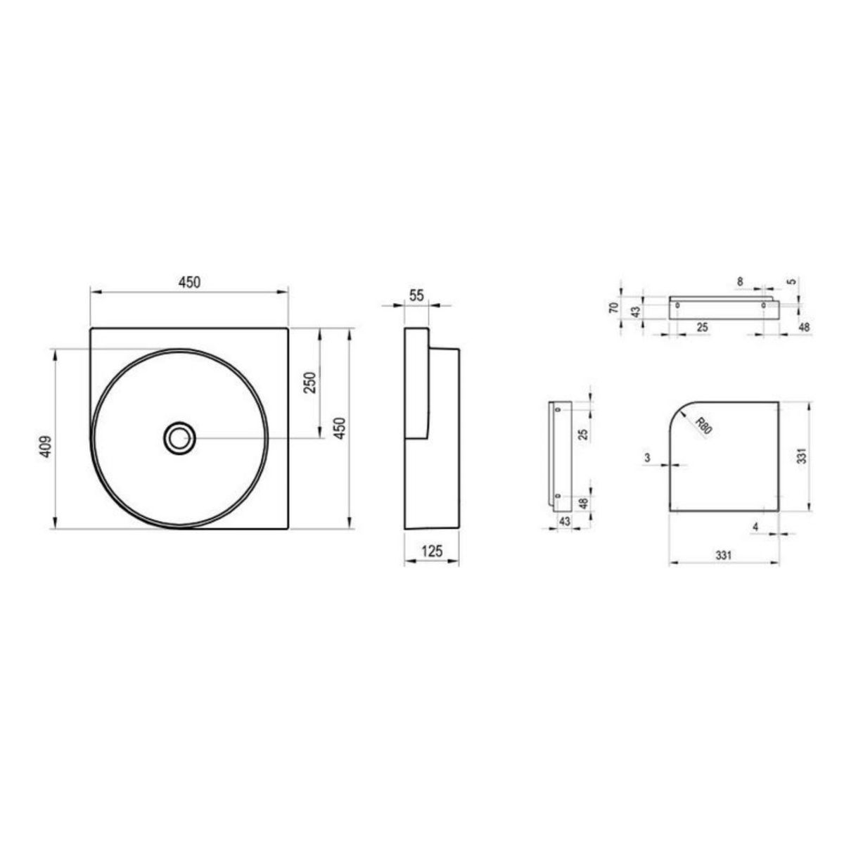 Ravak Yard lavabo 45x45 cm semicircular clásico-para mueble XJX07045000