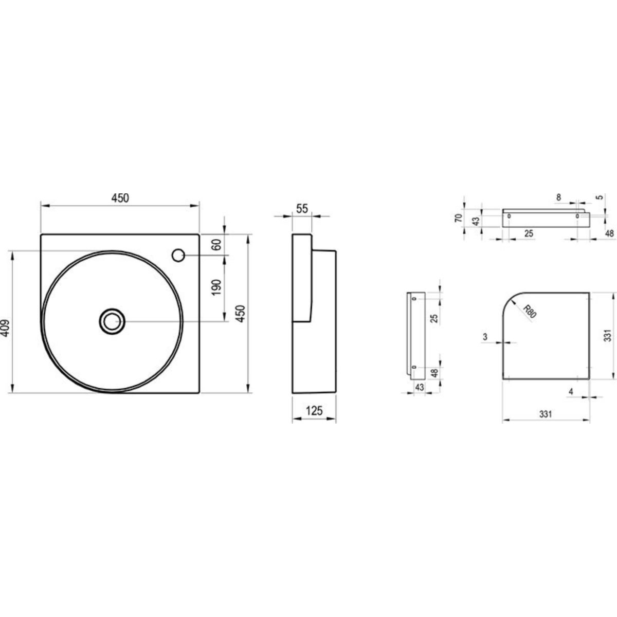 Ravak Yard lavabo 45x45 cm semicircular clásico-para mueble XJX07245000