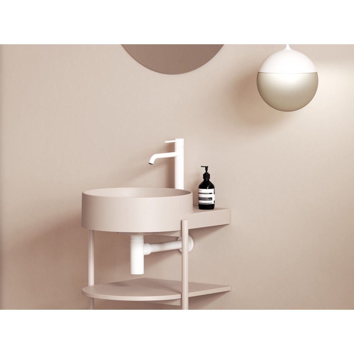 - accesorios a comprar: consola Yard 40, consola bajo lavabo CS Yard 40, enchufe fijo para lavabo, enchufe fijo abierto Flat para lavabo Alabaster Pink, sifón para lavabo, mezclador para lavabo