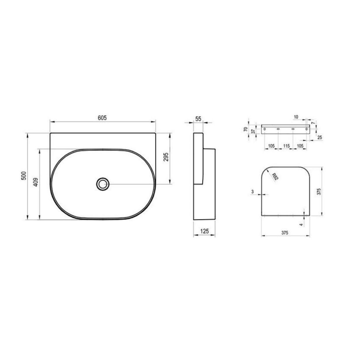 Ravak Yard lavabo 60.5x50 cm semicircular clásico XJX0O060000