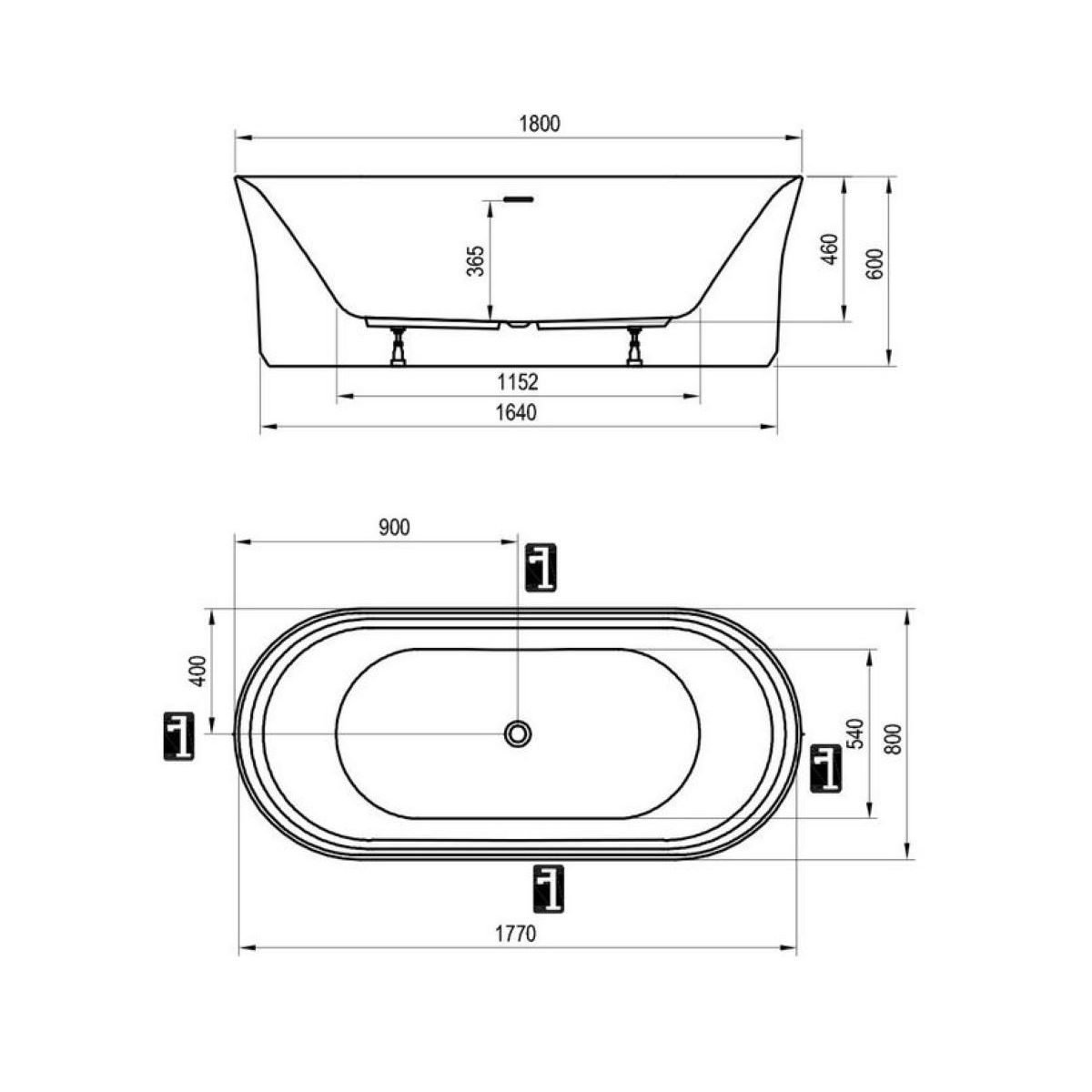 La bañera no se puede complementar con una mampara de bañera. Toda la instalación debe realizarse bajo el suelo (tanto el desagüe como el suministro de agua al mezclador de suelo). El juego de desagüe (es decir, rebosadero, sifón) y los soportes (pies) están incluidos. Para la bañera, también ofrecemos grifos exentos para instalar en el suelo.