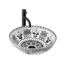 Rea Etno lavabo 40x40 cm circular sobre encimera blanco-negro REA-U7500