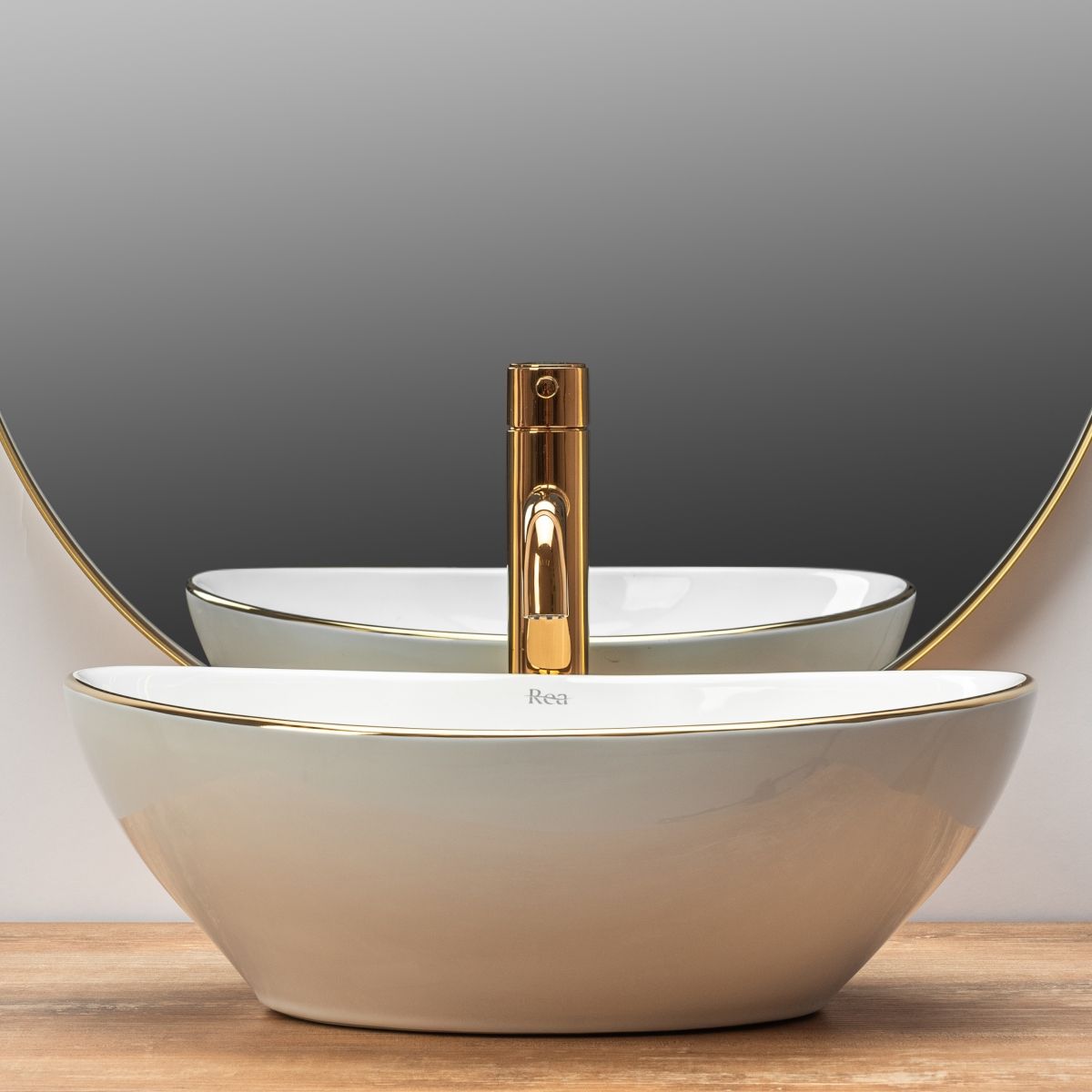 Rea Sofia lavabo 41x34.5 cm oval sobre encimera blanco-oro REA-U3287