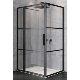 Riho Grid cabina de ducha 120x90 cm rectangular negro mate/vidrio con patrón G004020121