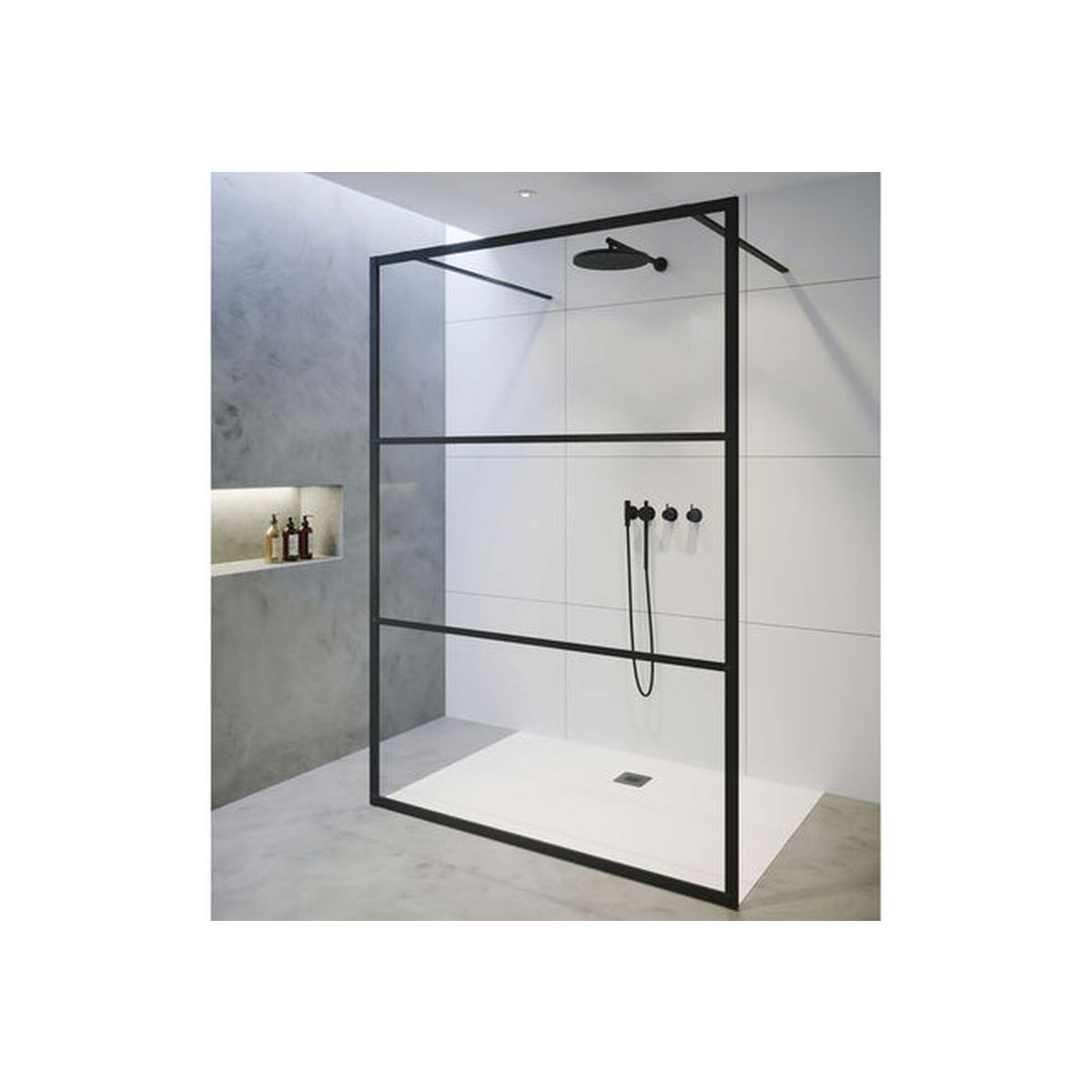 Riho Grid mampara de ducha 100 cm negro mate/vidrio con patrón G004031121