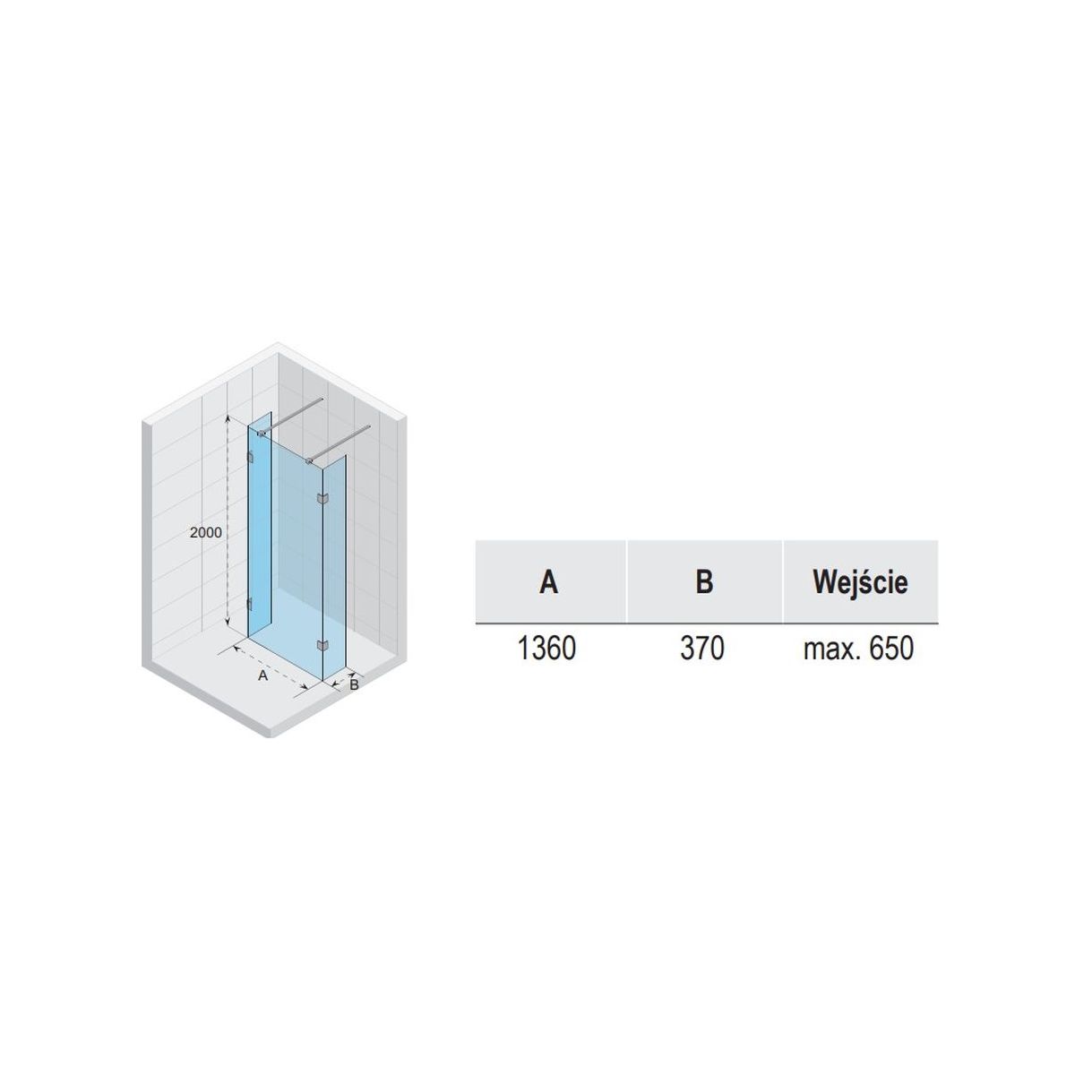 - dimensión real de la pared (A): 136 cm
