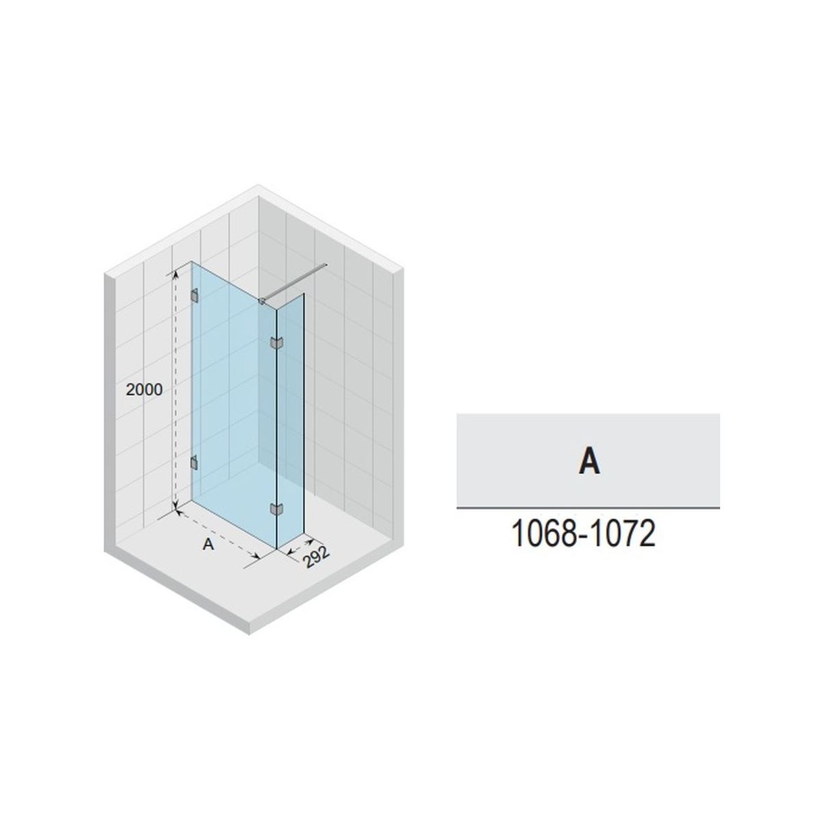 - dimensión real de la pared (A): 106,8 - 107,2 cm