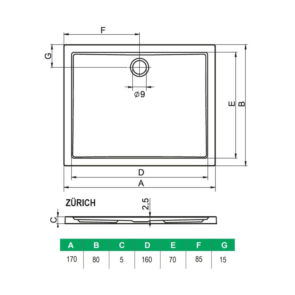 Riho Zurich plato de ducha rectangular 170x80 cm blanco D001018005