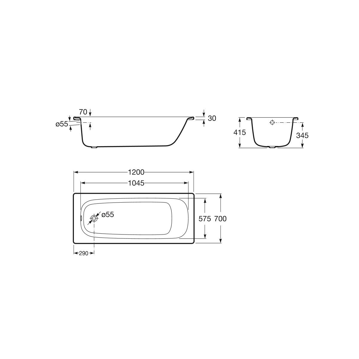 Roca Contesa bañera rectangular 120x70 cm blanco A212106001